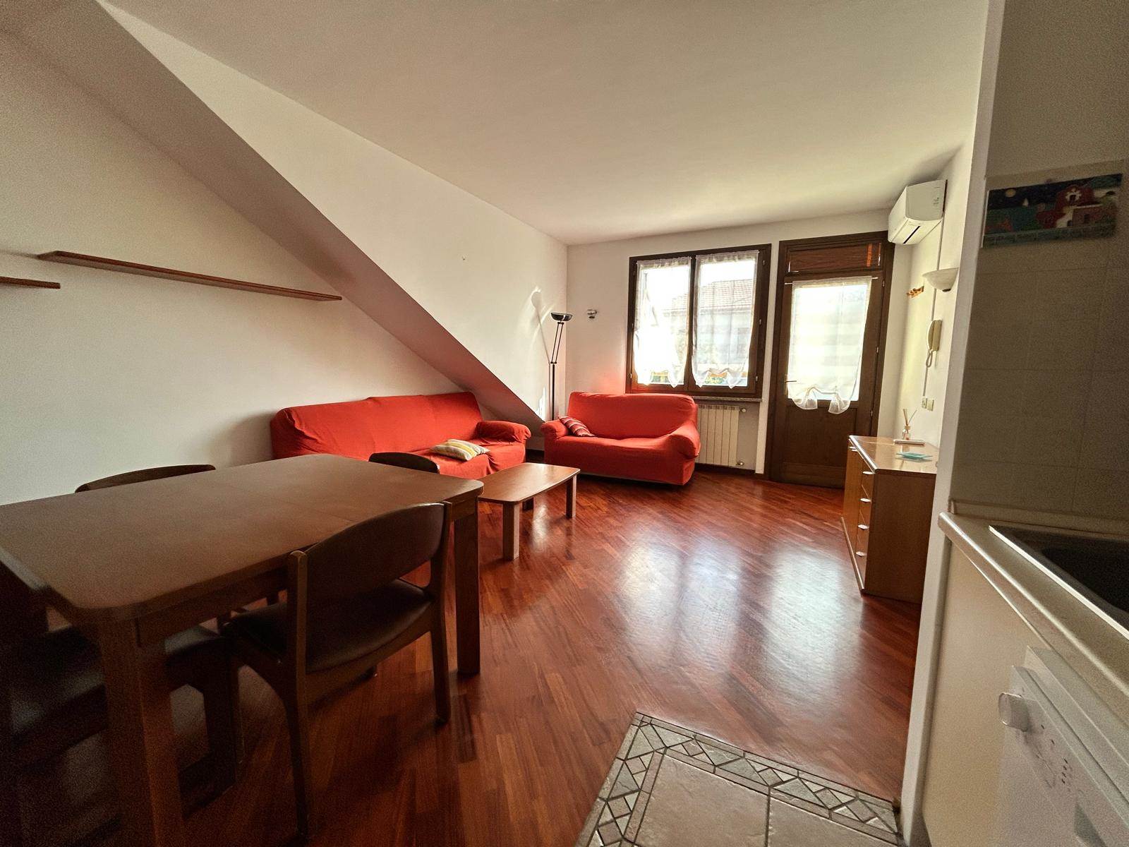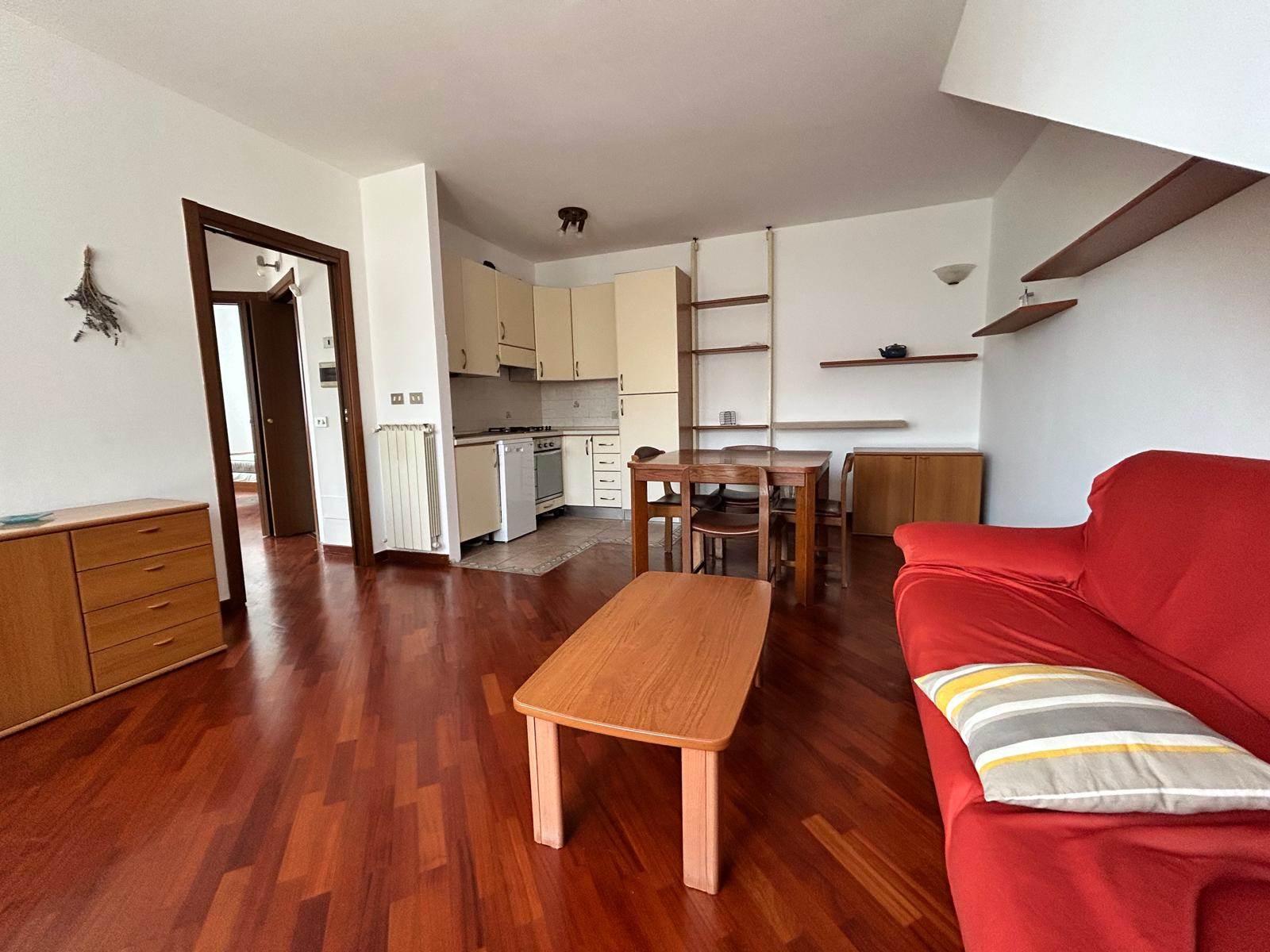 L' appartamento offre una piacevole zona giorno composta da soggiorno climatizzato con cucina a vista, ambiente luminoso e funzionale.