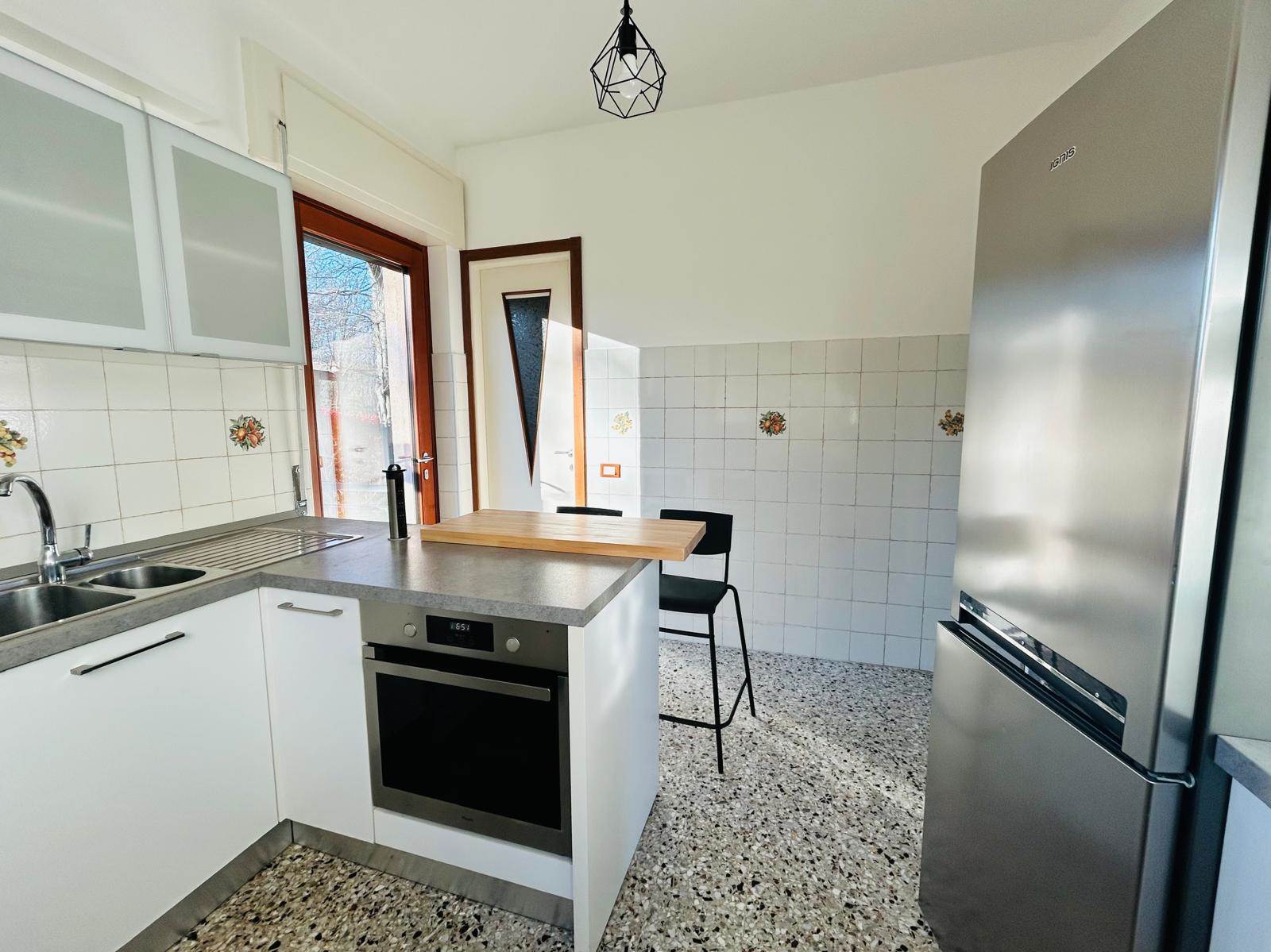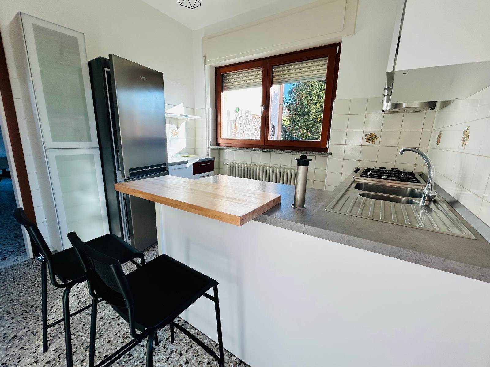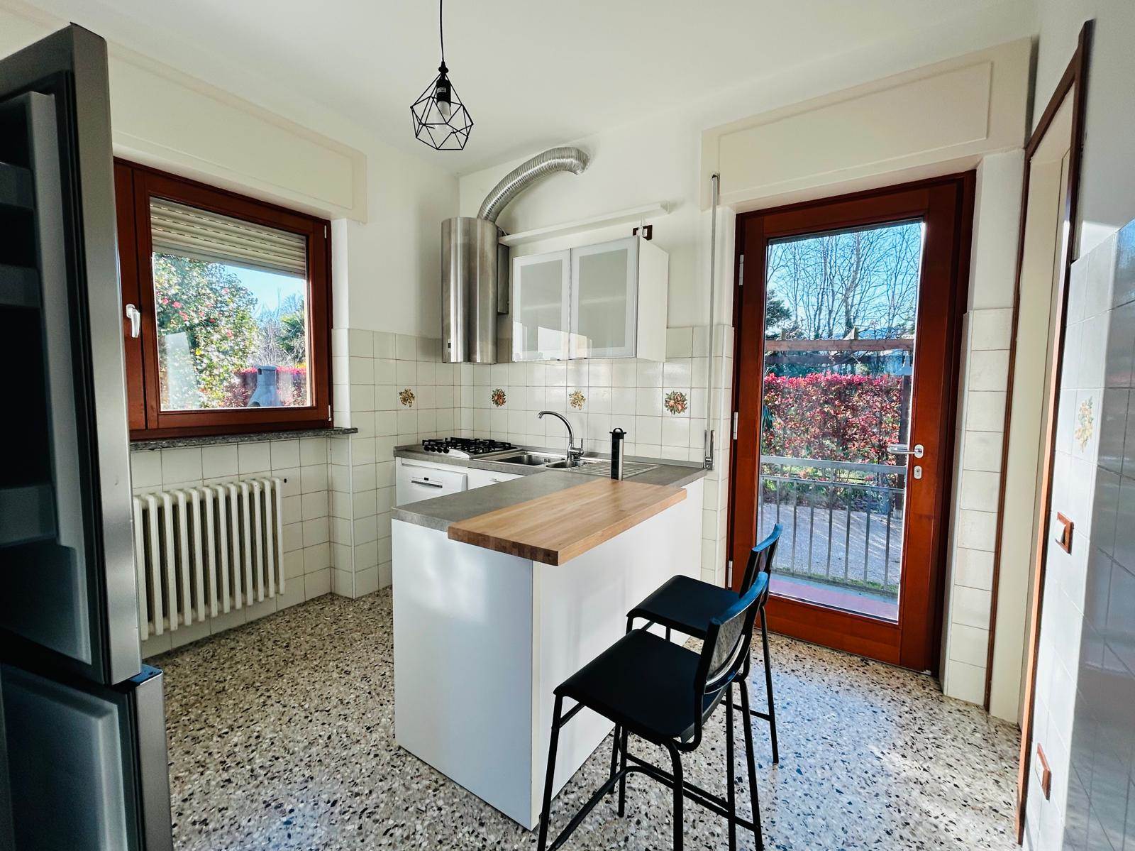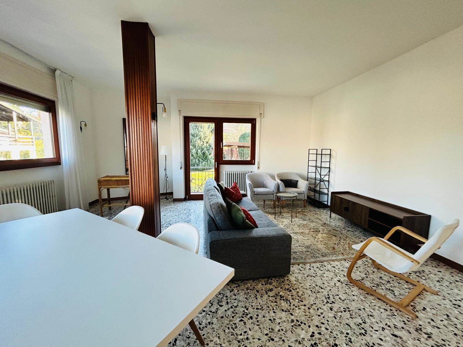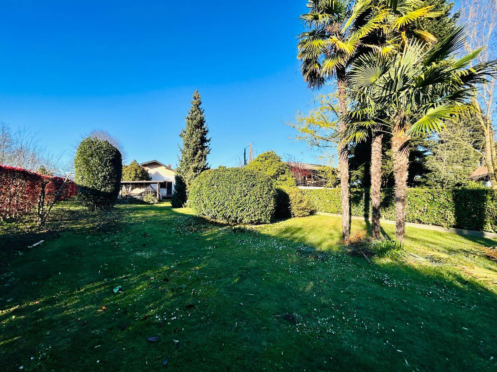 Nell'ampio giardino piantumato, si trova un comodo carport per due auto, una zona pergolata, servita da un barbecue, che consente di pranzare e cenare all'aperto, nella bella stagione.
