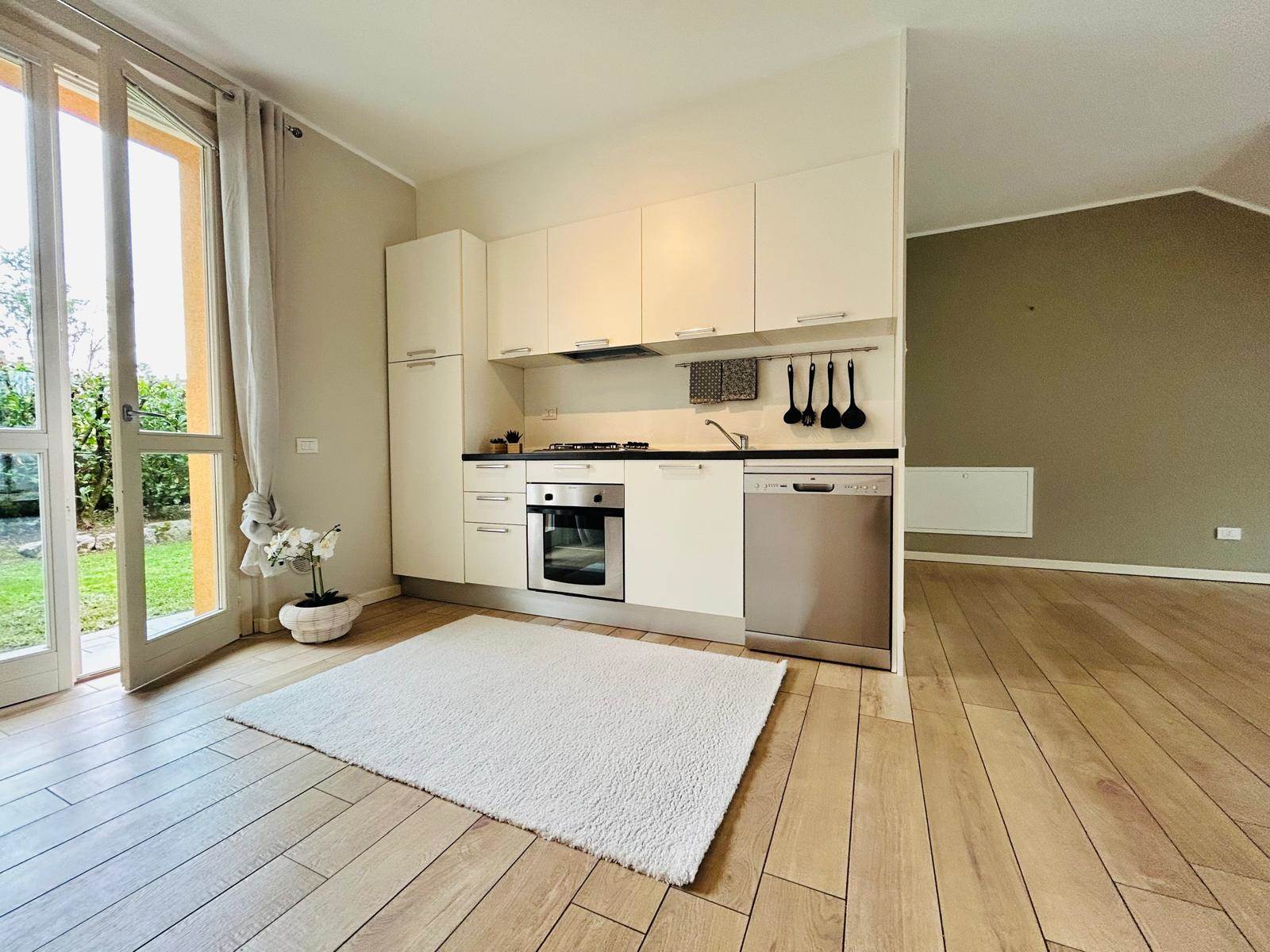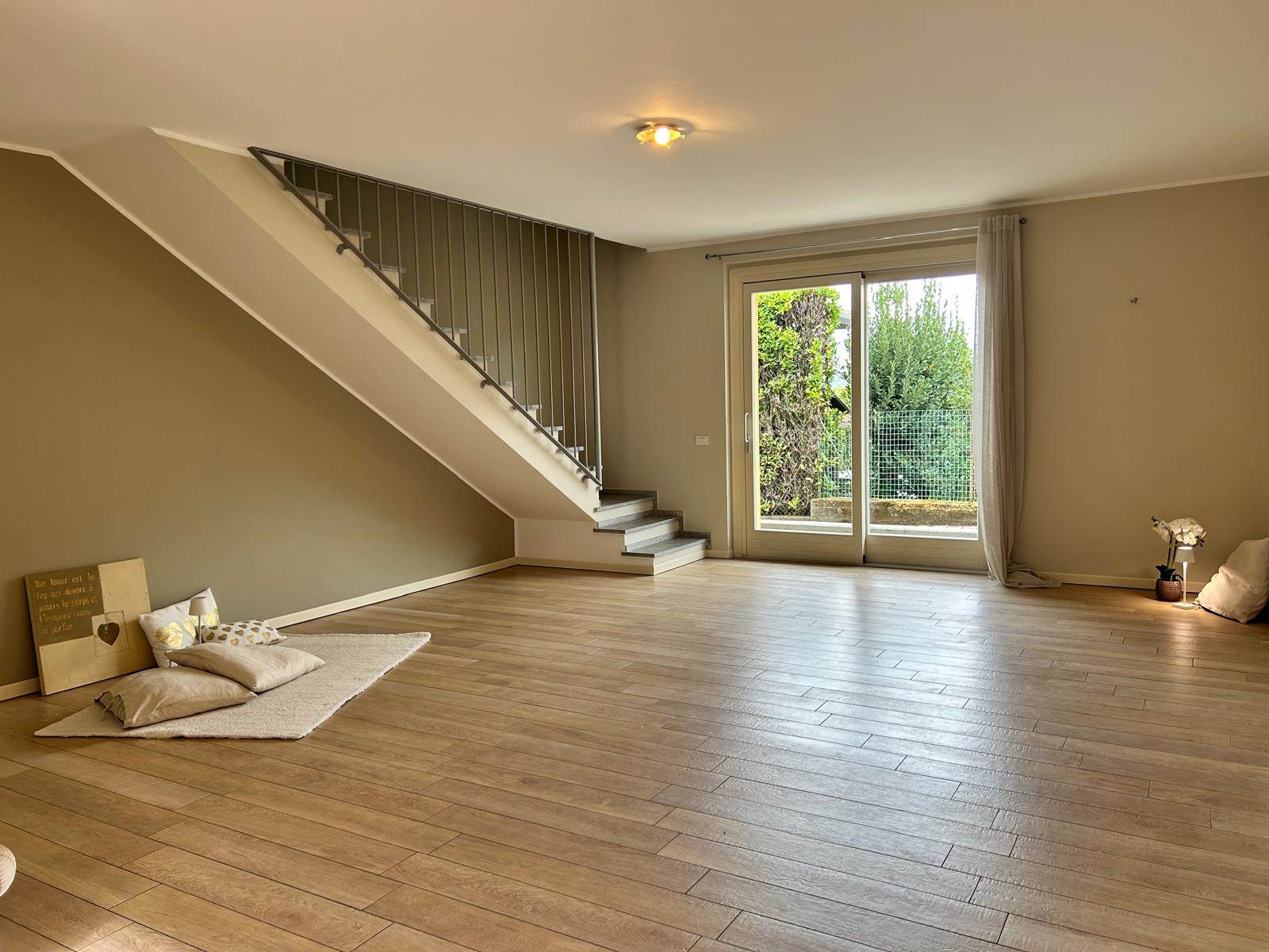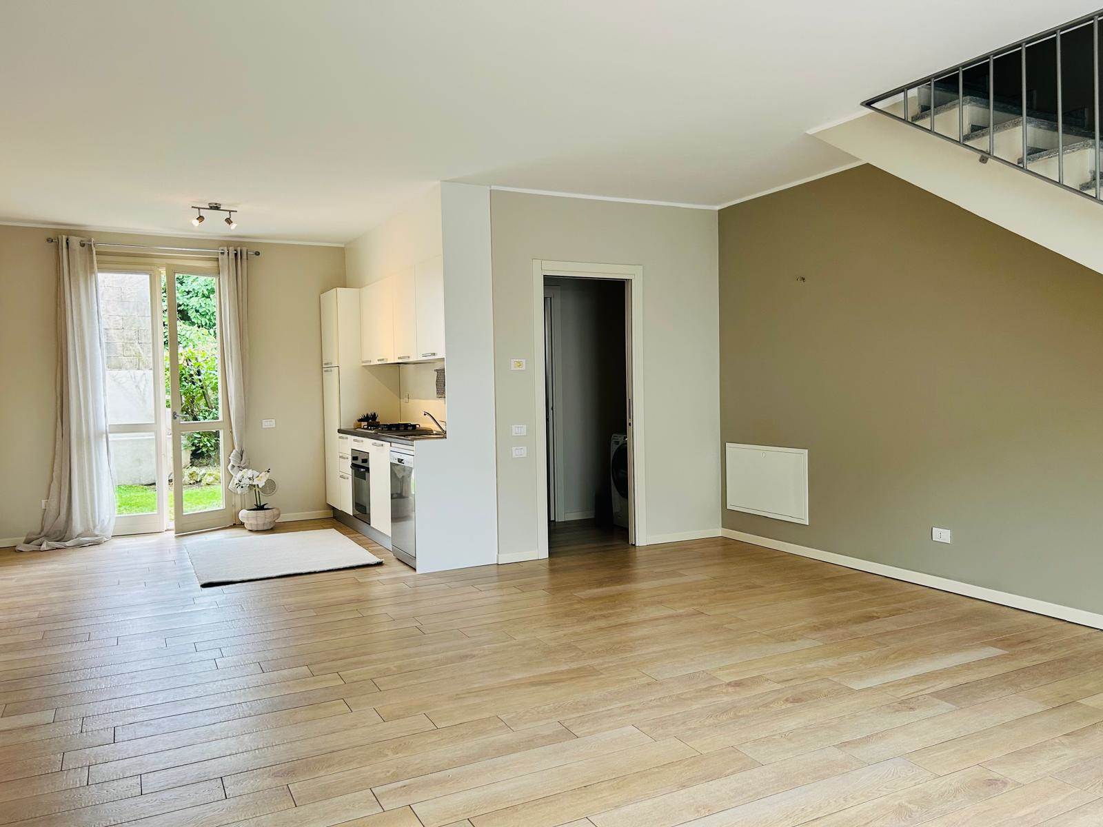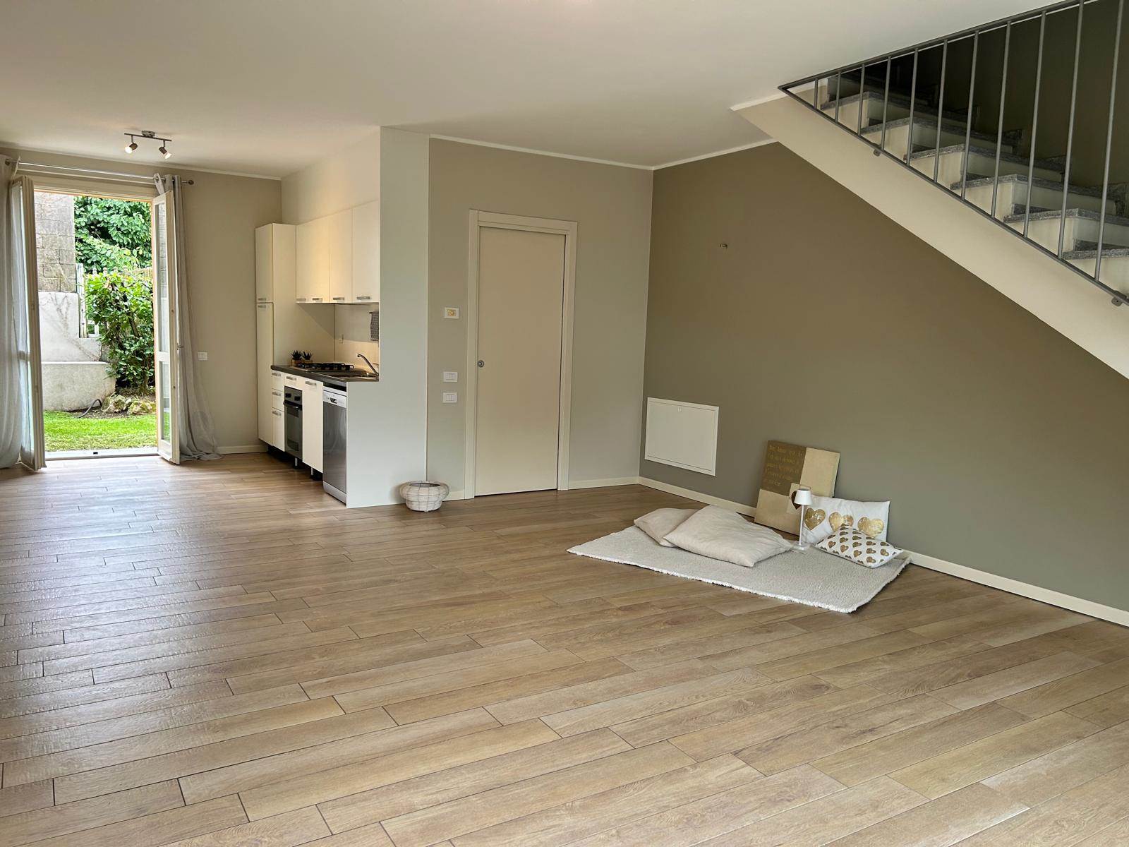 A Taino, a pochi passi dal centro, in zona residenziale e tranquilla, proponiamo in affitto questa bellissima villetta a schiera di testa, terminata nel 2012 e disponibile da settembre.