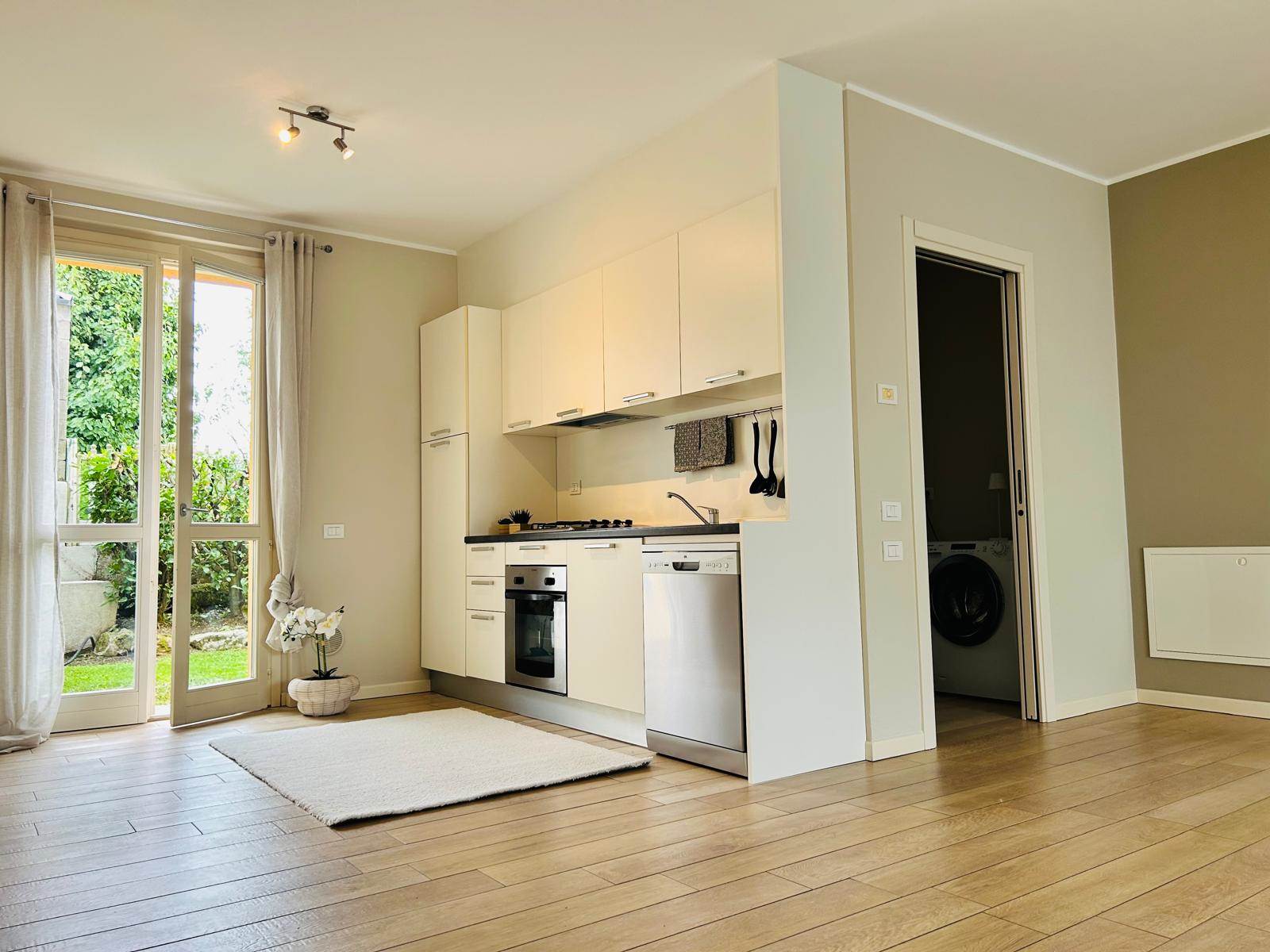 Completa l'offerta un box doppio in larghezza, un piccolo giardino privato e un grande terrazzo posto sopra il box.