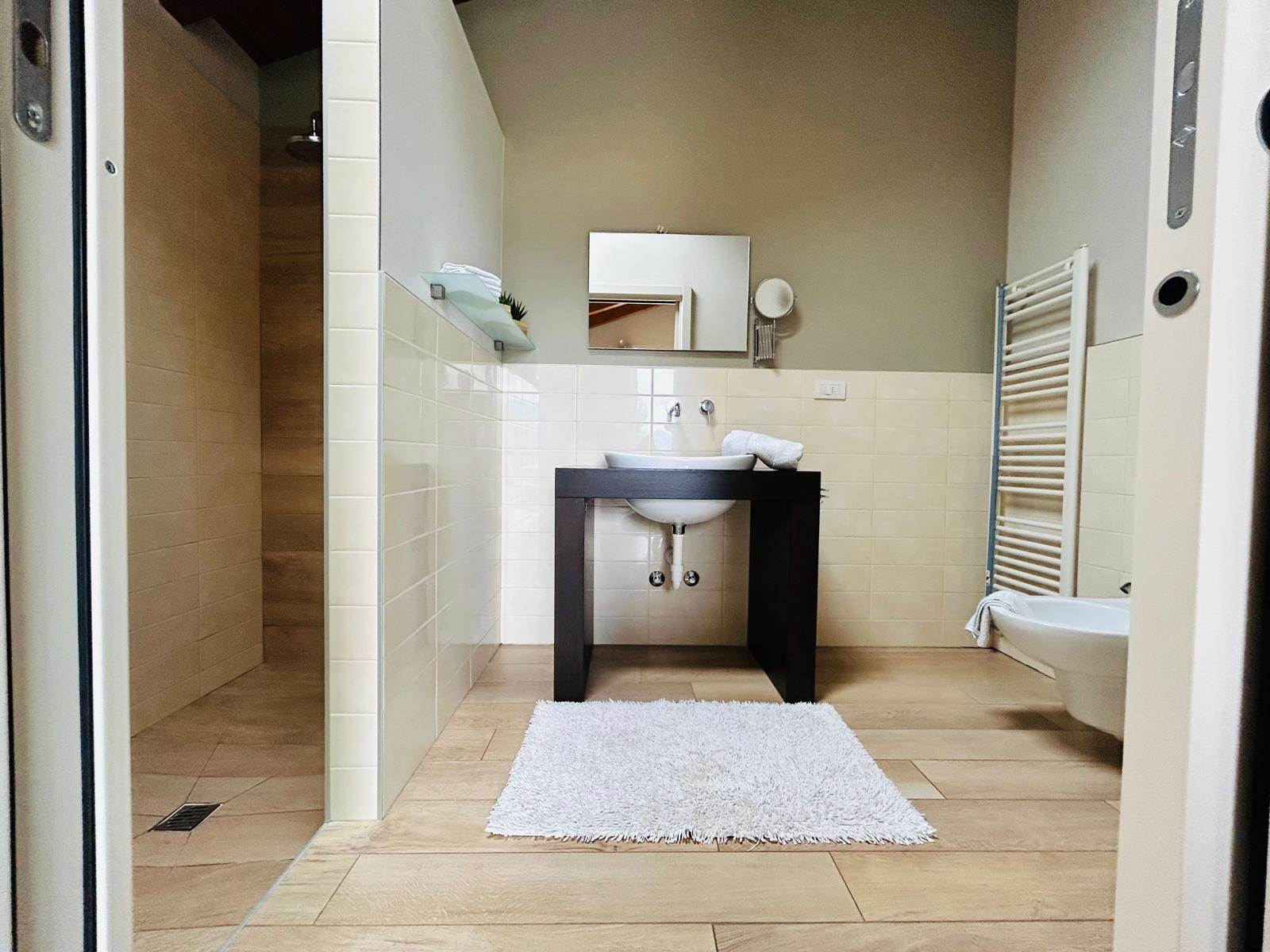 - Piano Primo - camera matrimoniale e bagno con doccia ensuite oltre a balcone; cameretta con balcone e bagno con vasca.