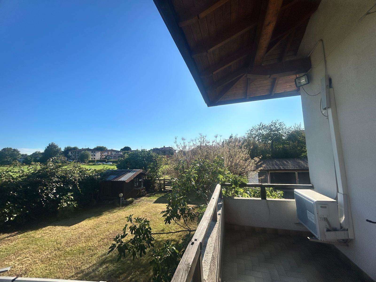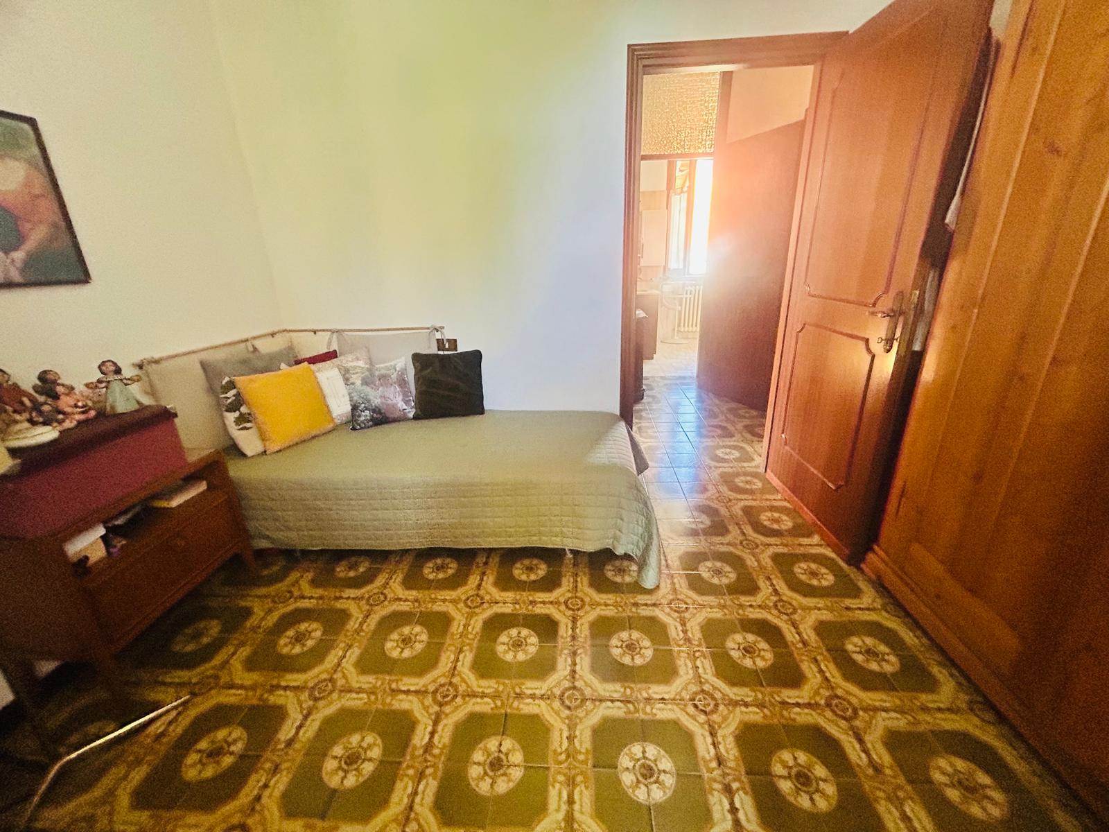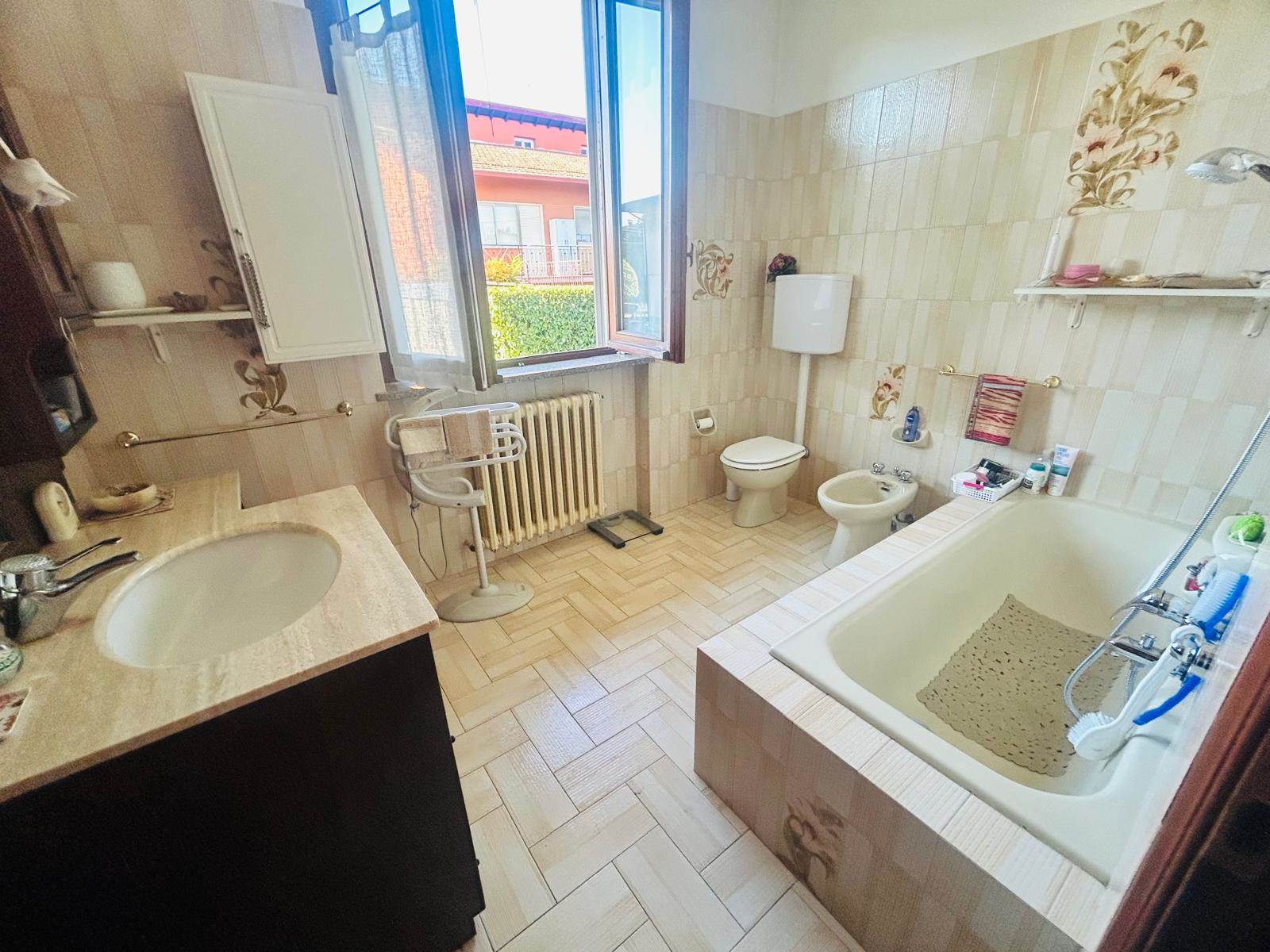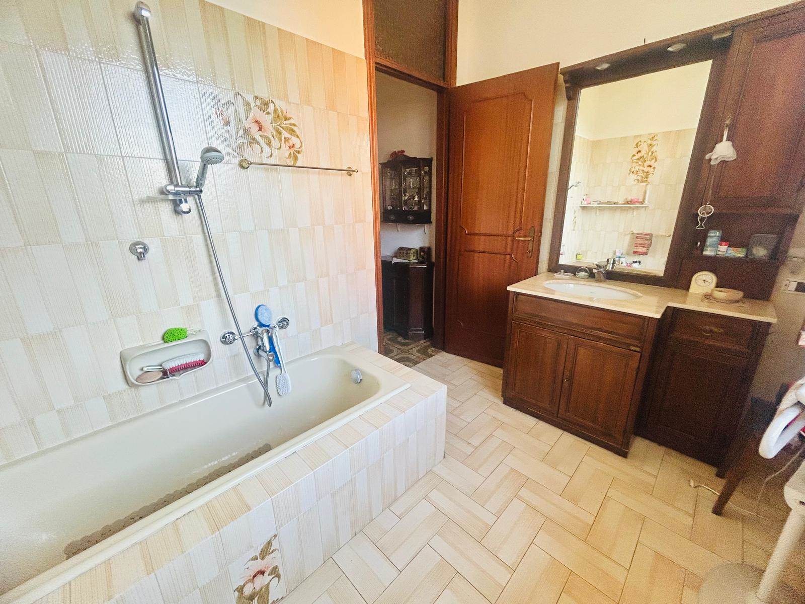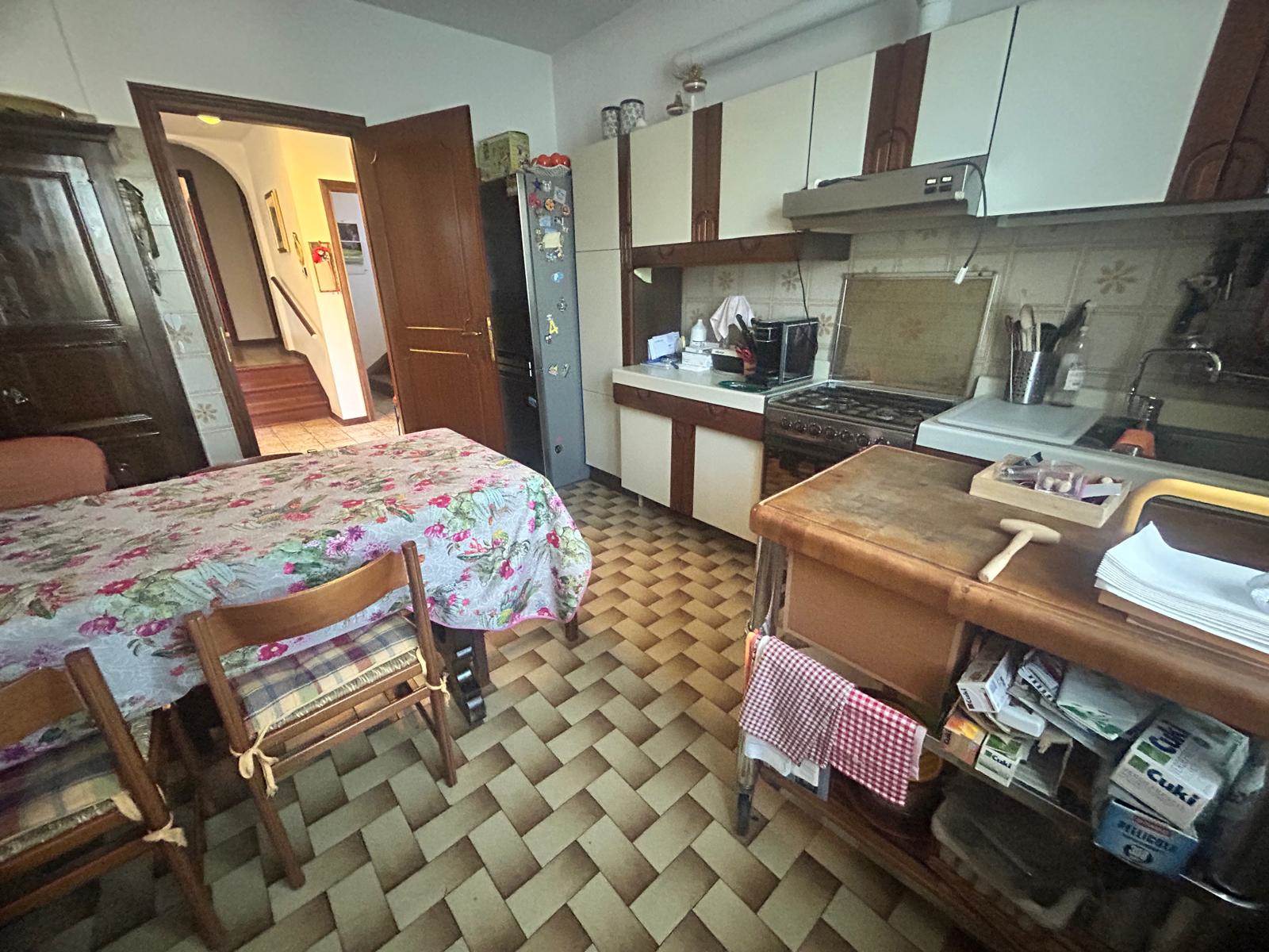 al piano rialzato, ingresso, disimpegno, ampio soggiorno con camino, cucina abitabile, disimpegno, tre camere, balconi e due bagni.