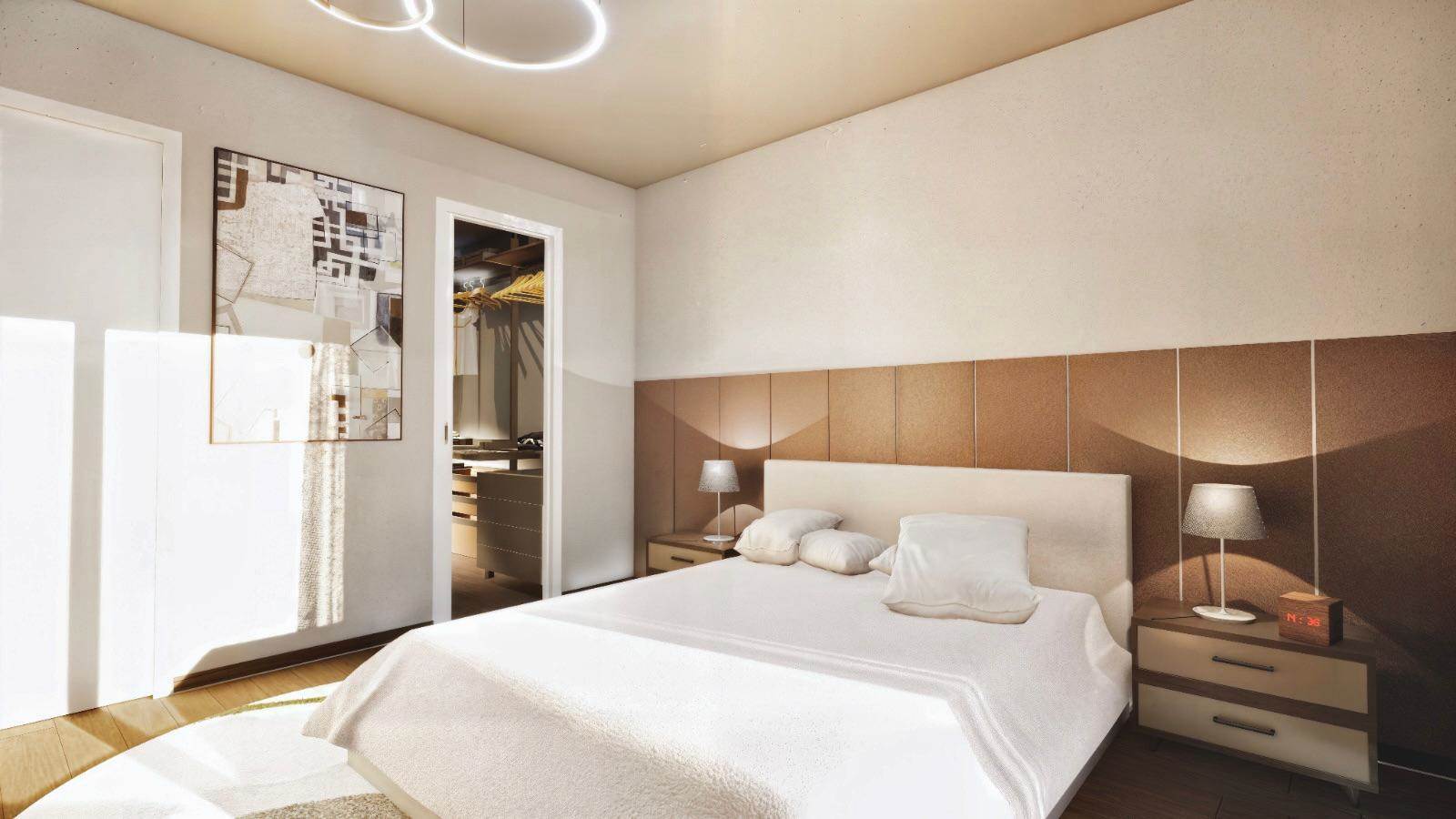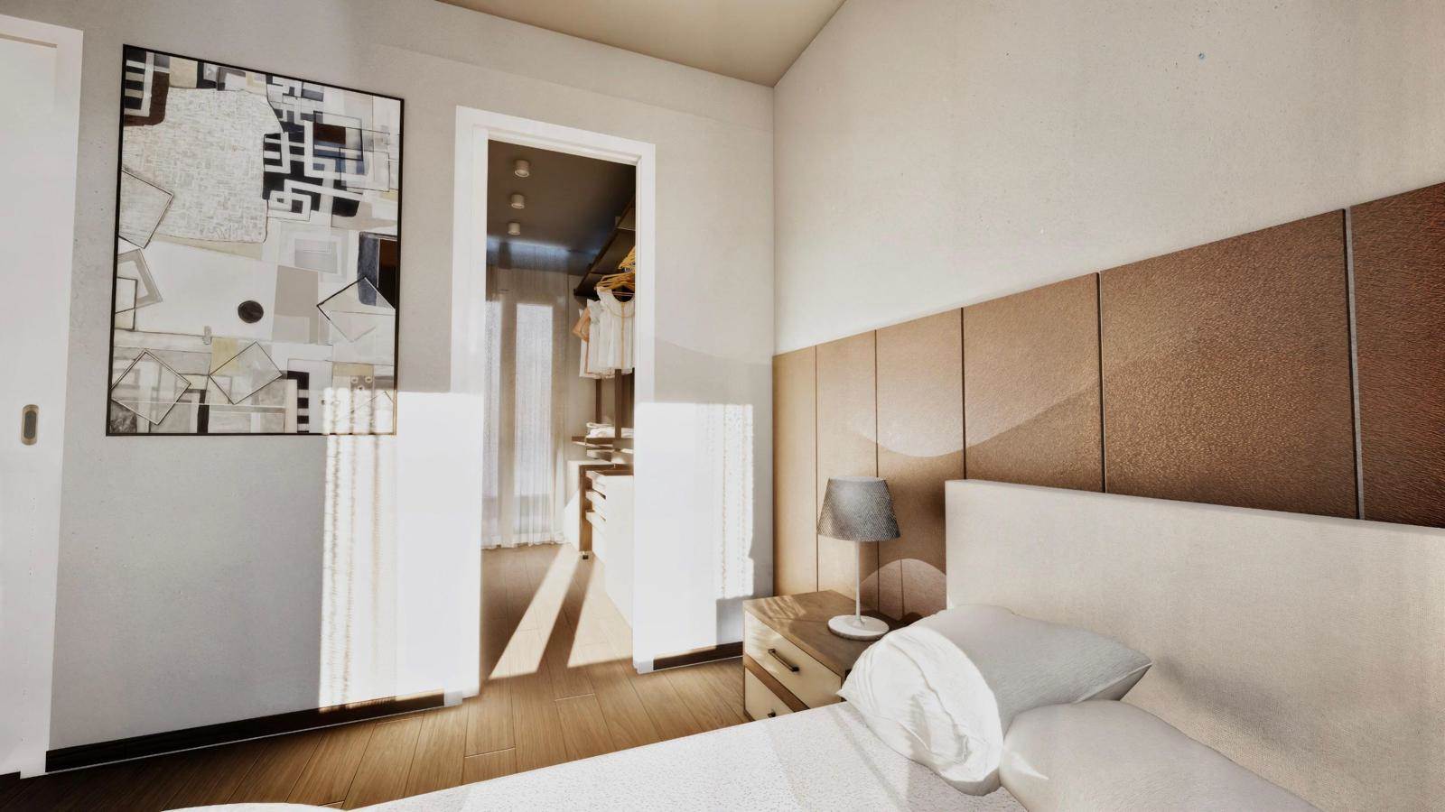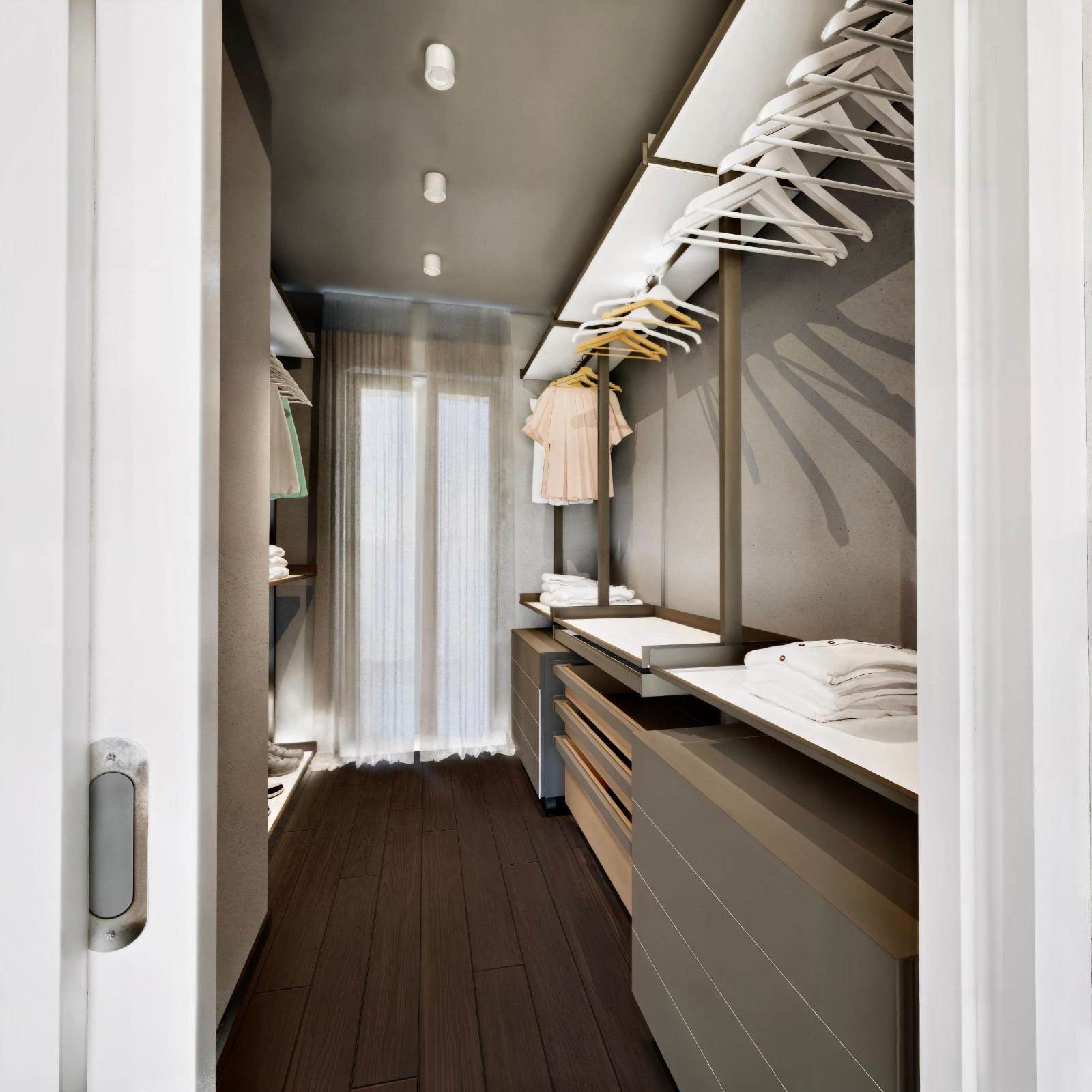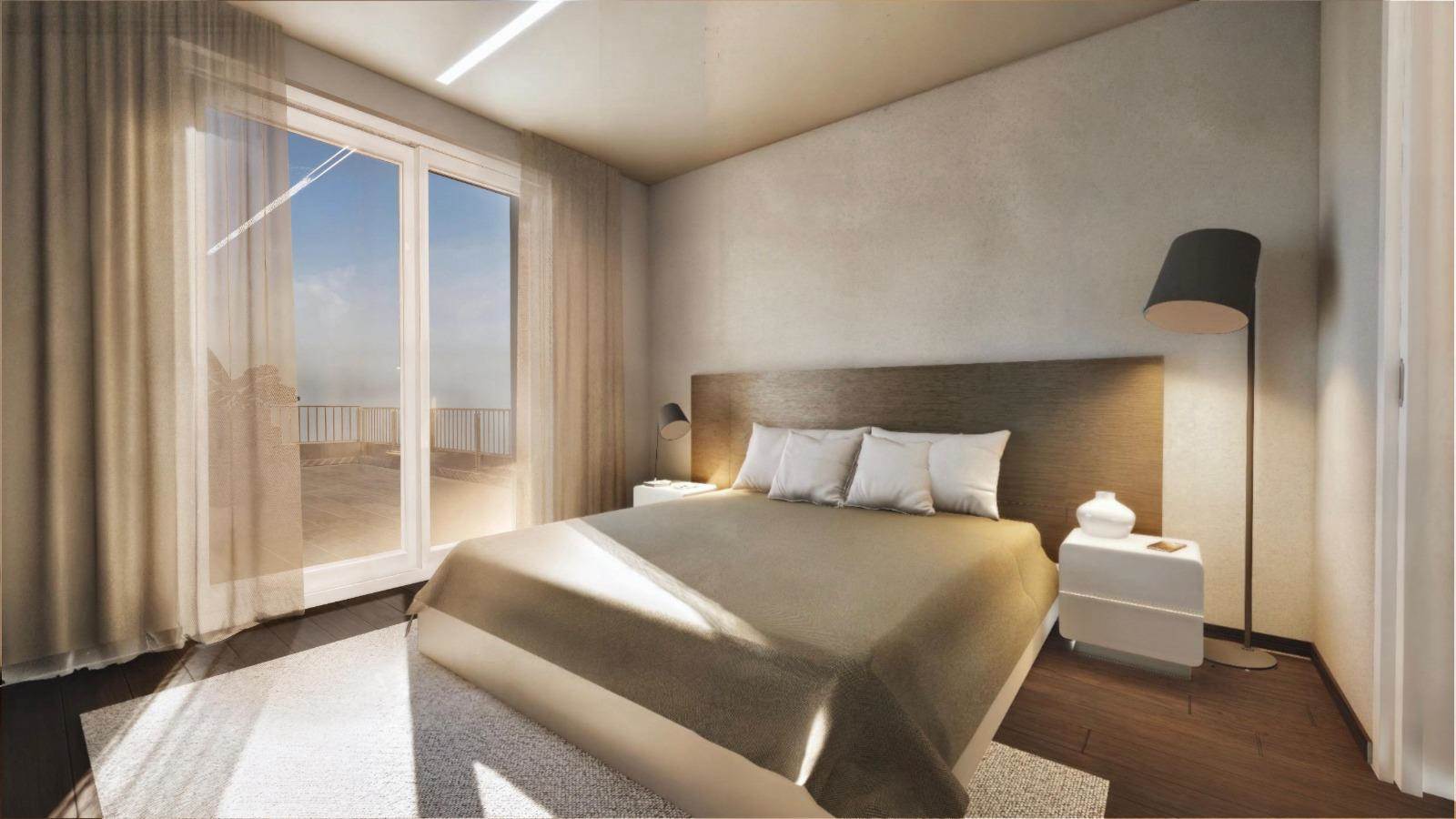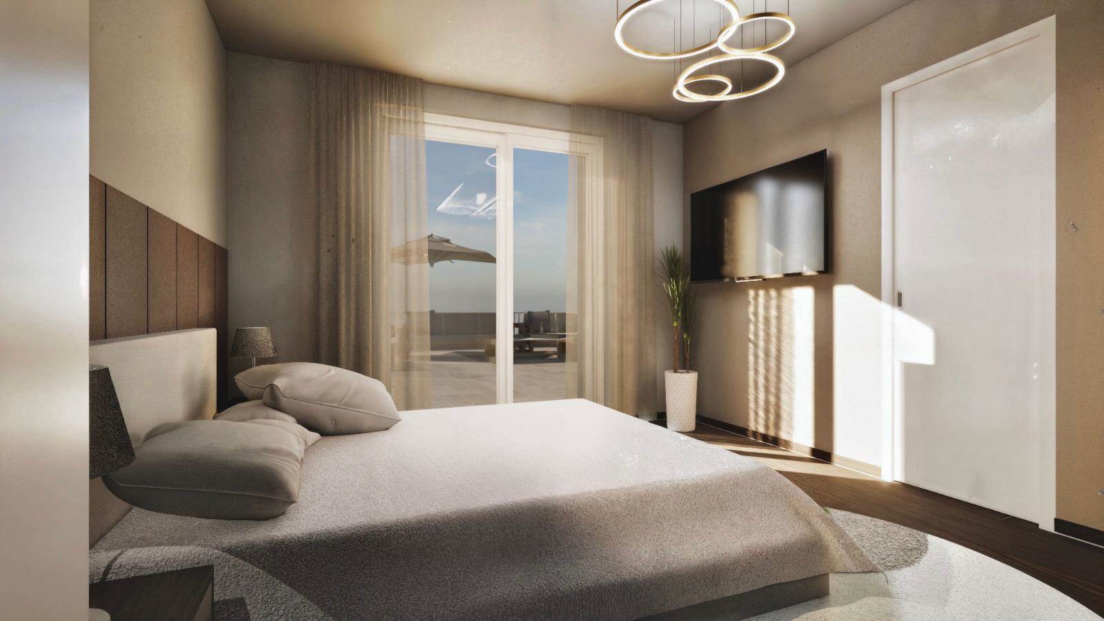 Piano primo - grande terrazzo di circa 90 mq, due camere, due cabine armadio e due bagni.