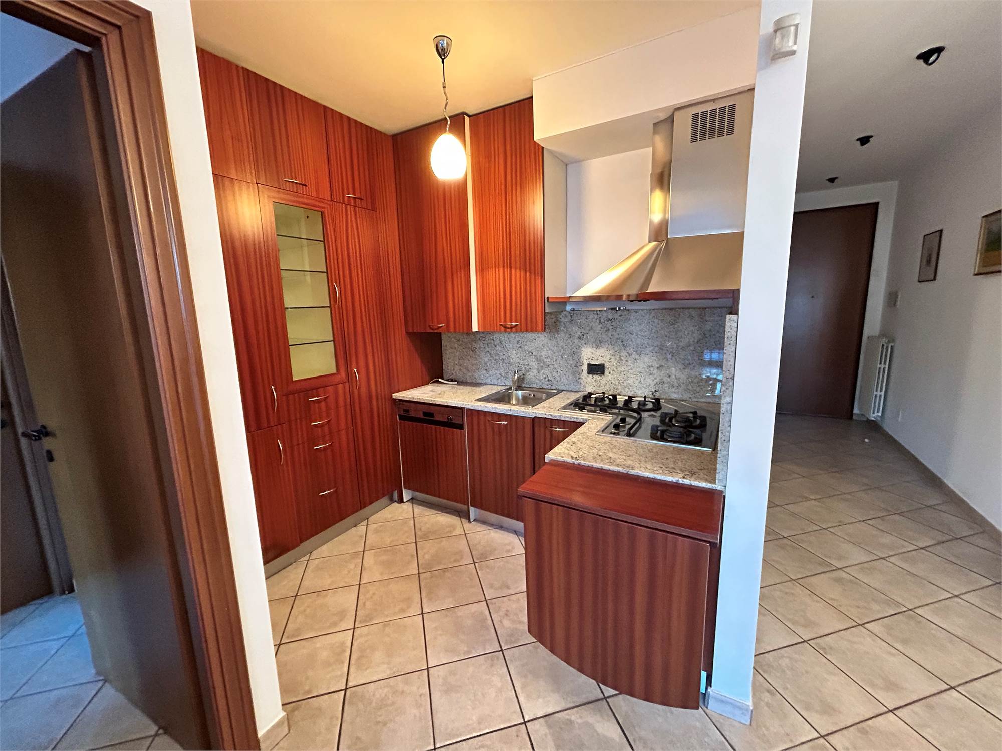 L'unità immobiliare è composta da ingresso, soggiorno con cucina arredata a vista, due camere, due bagni di cui uno con doccia idromassaggio e bagno turco e uno con vasca, ripostiglio e doppia area esterna esclusiva. L'appartamento e' dotato di pannelli per isolamento acustico, di zanzariere e inferriate.
