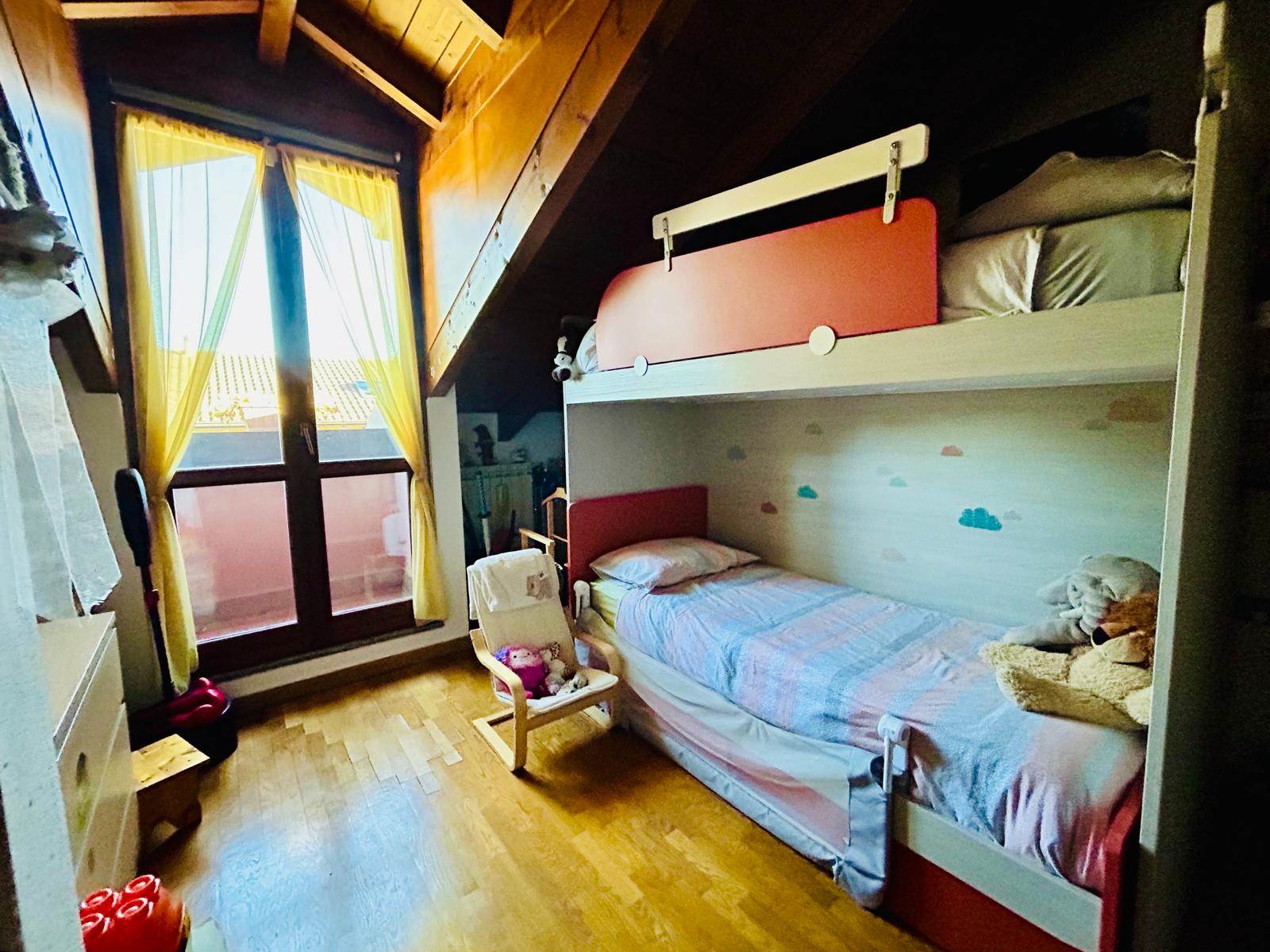 al piano mansardato, una camera matrimoniale con porta finestra sul balcone, cameretta con balcone e bagno con doccia.
