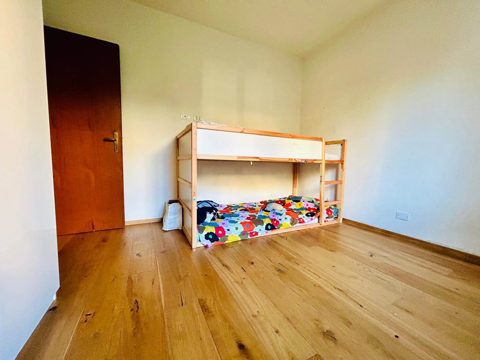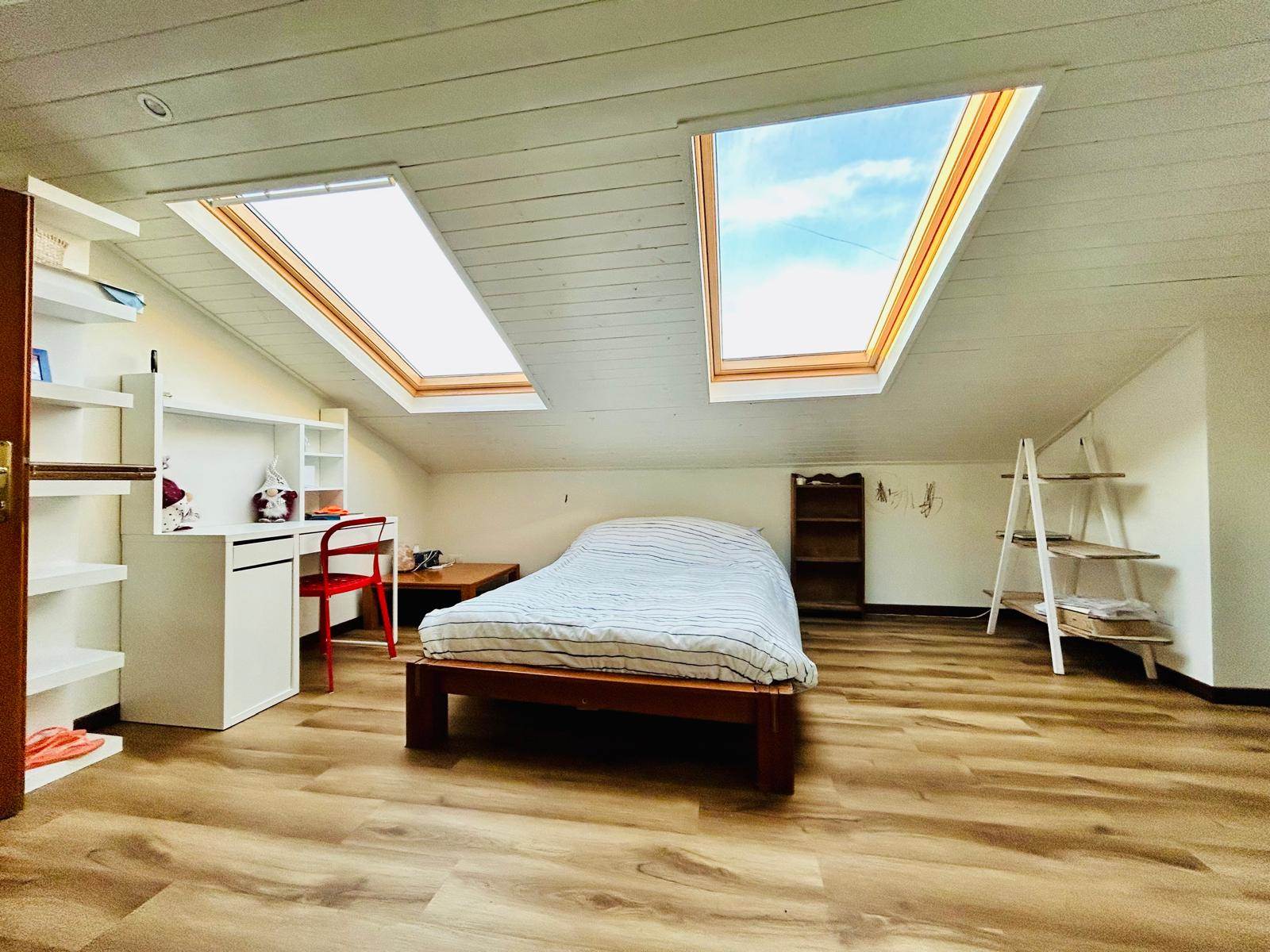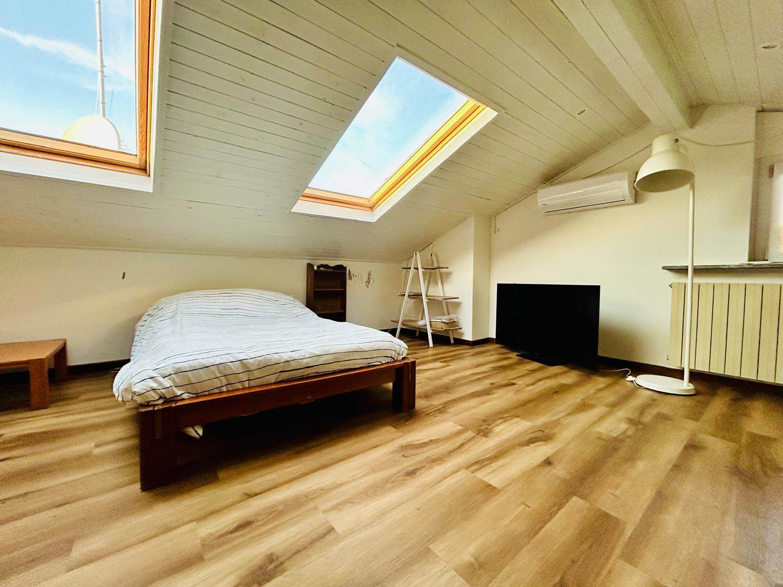 La scala prosegue e conduce al piano mansardato, dove si trova una bellissima e ampia camera con un bagno di servizio.